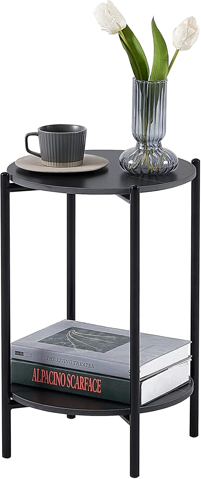 NicBex Coffee Table Wooden Coffee Table with Storage Round Center Tables with Open Bottom Shelf End Table for Living Room, Dining Room, Office, and Bedroom,14.17" W, Black
