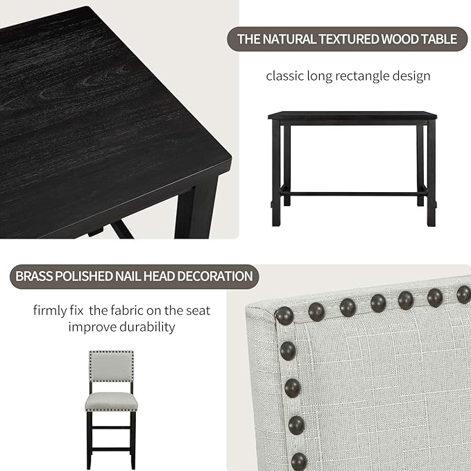 5 Piece Counter Height Dining 4 Person, Classic Elegant Home Kitchen Table Farmhouse Dinette Set Included Four Padded Backrest Chairs, Espresso+White