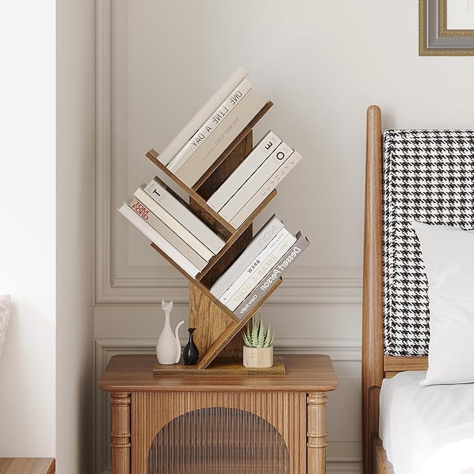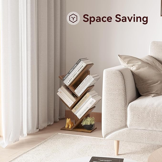 About This 【Small Bookshelf for Small Spaces】- Featuring a compact design, the floor standing tree bookshelf optimizes floor space, making...