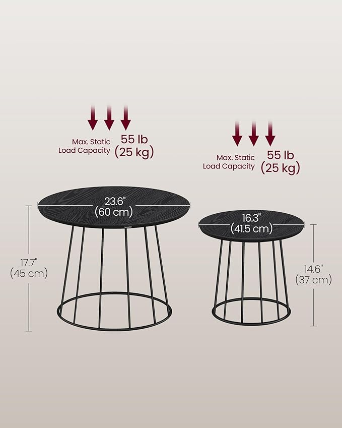 VASAGLE Round Coffee Tables, Set of 2, Modern Circle Side Tables with Steel Frame, for Living Room, Bedroom, Ebony Black ULCT045B56