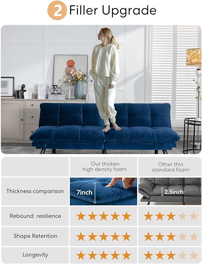 About This Cloud-like Comfort Futon Bed: Filled with 7" high-density foam seat cushion,this fluffy and overstuffed small futon couch creates...
