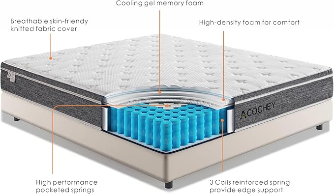 About This 【Comfortable and Breathable】:8-inch Acochey gel memory foam hybrid full spring mattress is comfortable breathable and nature, and can...