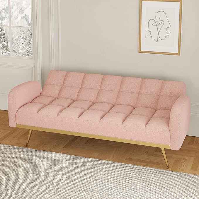 NicBex Sectional Couch Sofa with 2 Throw Pillows Sofa Bed Cloud Couch for Living Room Furniture Sets with Removable Comfortable Armrest, Modular Sofa for Living Room, Bedroom, Apartment,69" L, Pink