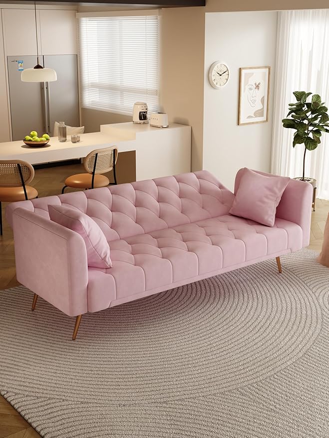 NicBex Sectional Couch Sofa with Double Folding Velvet Sofa Bed Cloud Couch for Living Room Furniture Sets with Aadjustable Back, Modular Sofa for Living Room, Bedroom, Apartment,71" L, Pink