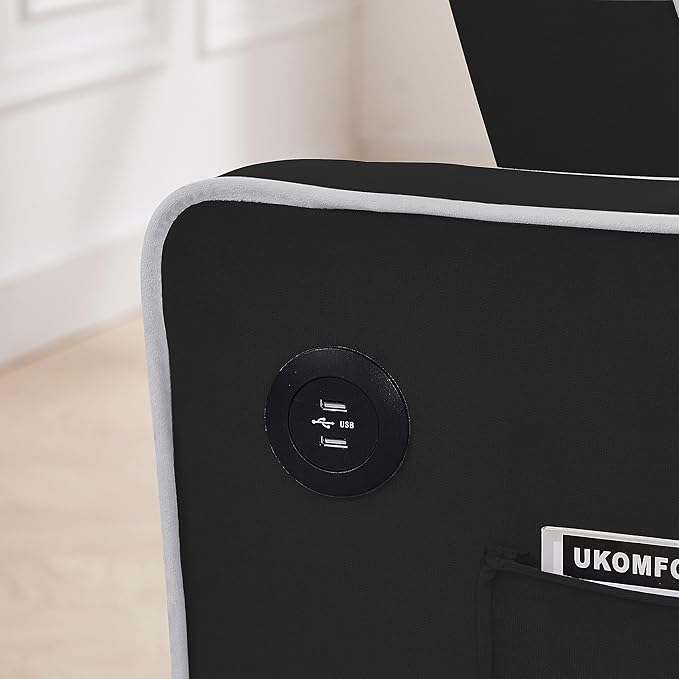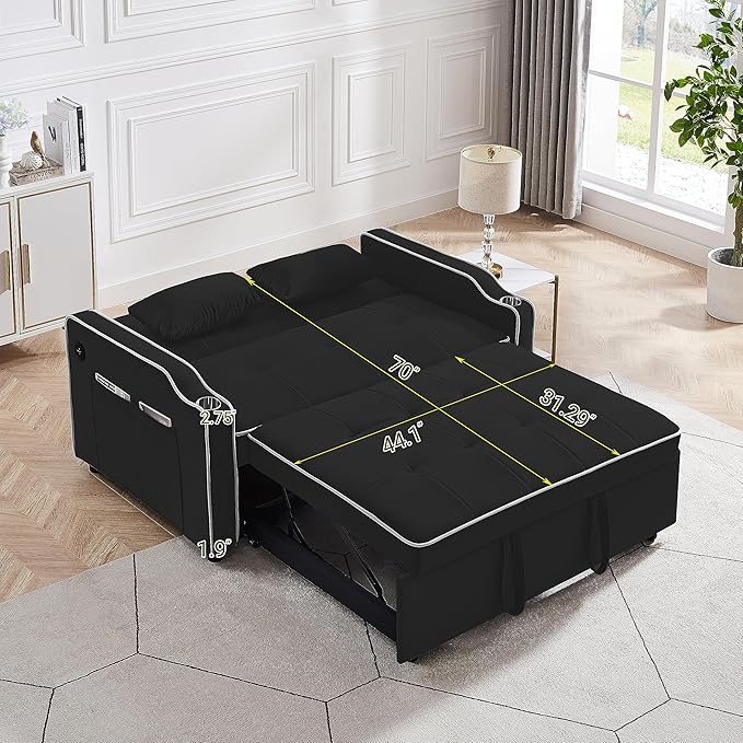 3-in-1 Velvet Upholstered Sofabed Tufted Futon Loveseat Sofa Convertible Sleeper Couch Bed with Cupholders and USB Charging Ports,Modern 2-Seaters Love Seat Daybed for Living Room, 55.2", Black1