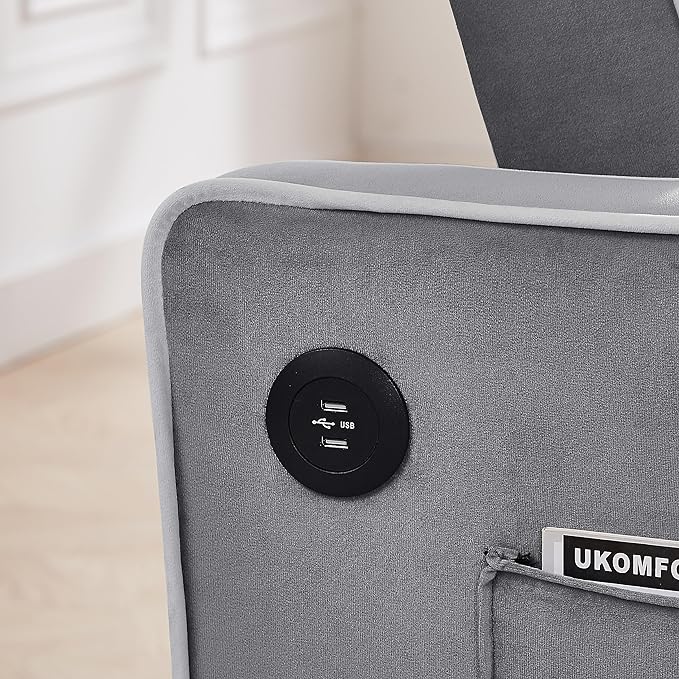 3-in-1 Velvet Upholstered Sofabed Tufted Futon Loveseat Sofa Convertible Sleeper Couch Bed with Cupholders and USB Charging Ports,Modern 2-Seaters Love Seat Daybed for Living Room, 55.2", Gray1