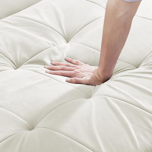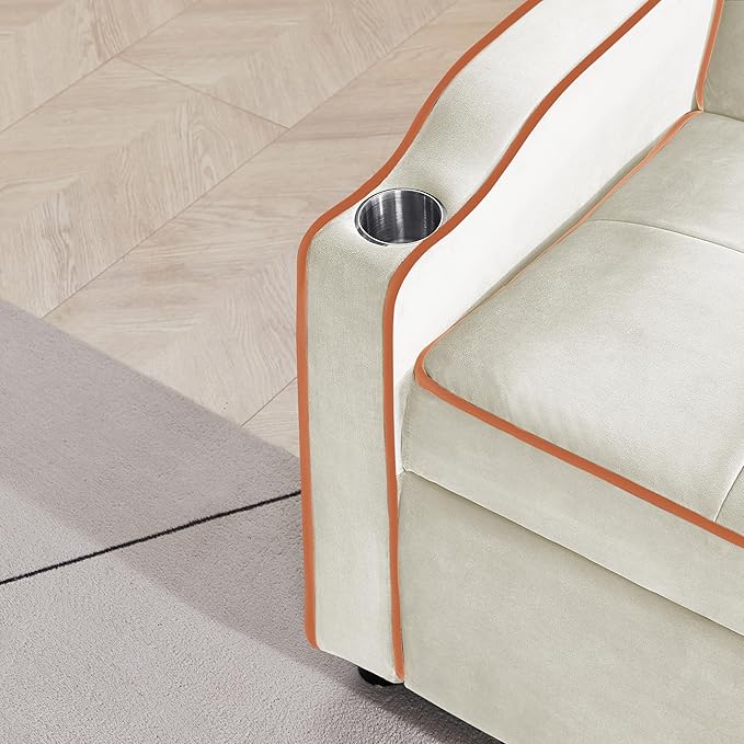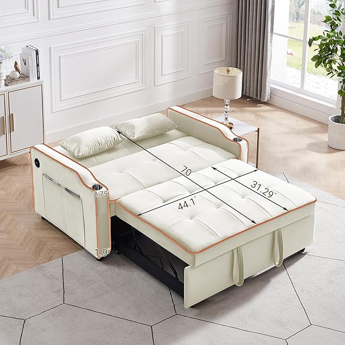 3-in-1 Velvet Upholstered Sofabed Tufted Futon Loveseat Sofa Convertible Sleeper Couch Bed with Cupholders and USB Charging Ports,Modern 2-Seaters Love Seat Daybed for Living Room, 55.2", Beige1