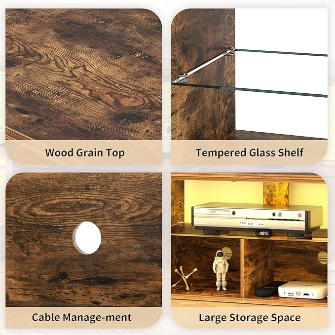 About This Wood 【RGB LED TV Stand Lights】VECELO LED TV stand features 23 colors and 4 modes. TV stand enhance...