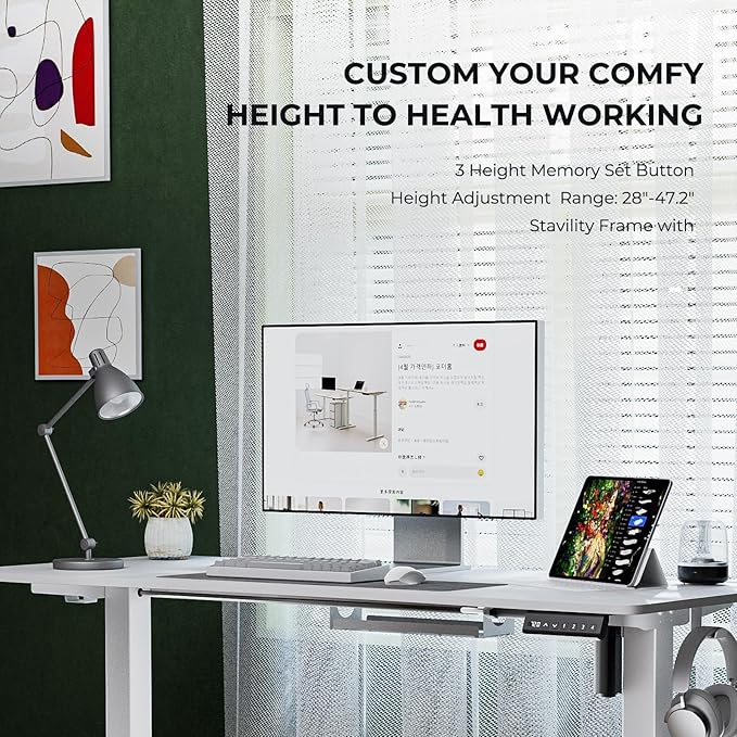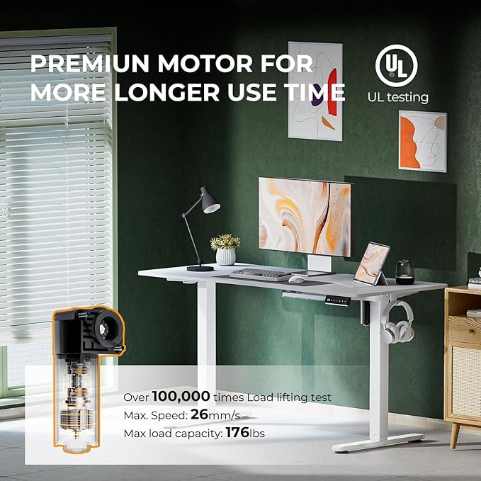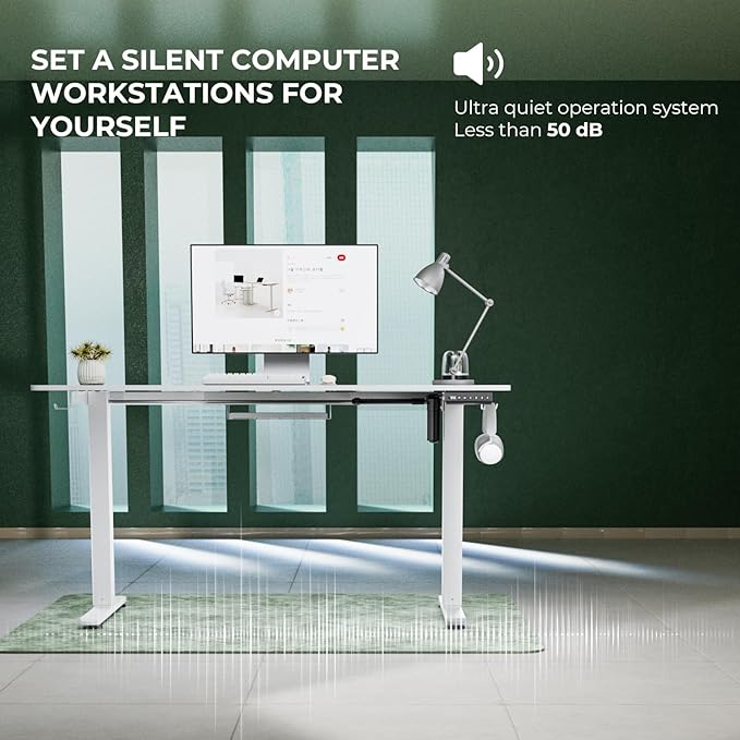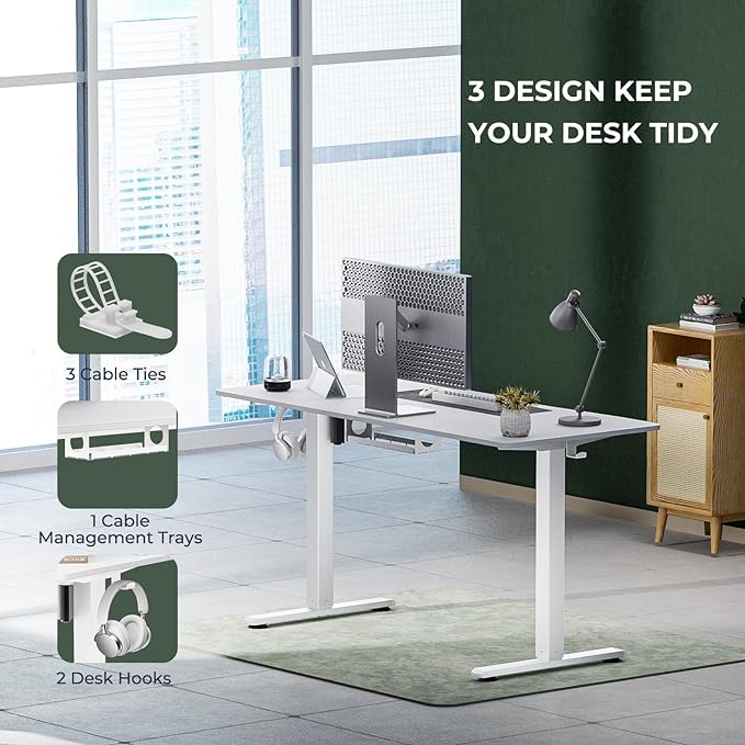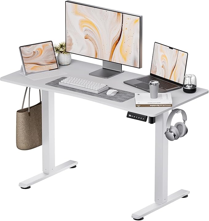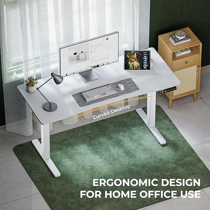 Electric Standing Desk,Adjustable Height Desk With Curved Desktop, Stand Up Desk With 2 Metal Hooks & Cable Organizer Box, Powerful Motor For Fast Switch From Sit To Stand Position 55x24 White