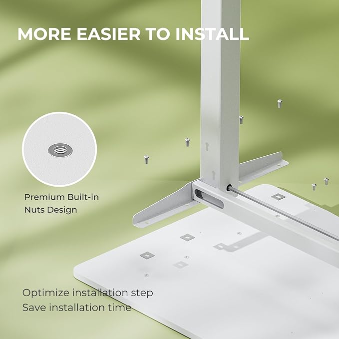 About This 1.Effortless Installation: The desktop is upgraded with built-in nuts, reduce the drilling time and makes the standing desk...