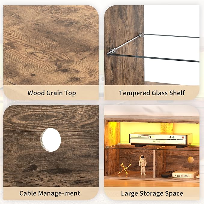 About This Wood 【RGB LED TV Stand Lights】VECELO LED TV stand features 23 colors and 4 modes. TV stand enhance...
