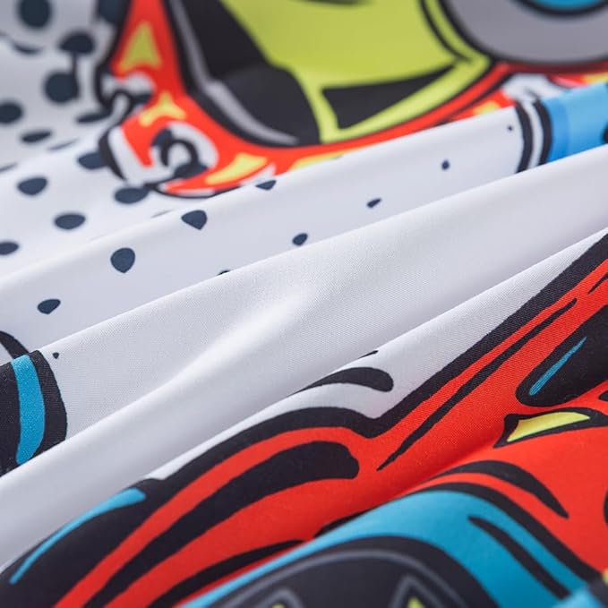 About This Game Controller Design: Colorful video game controller comforter with black blue yellow and red colors with gamer sheets...