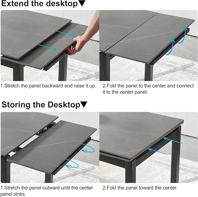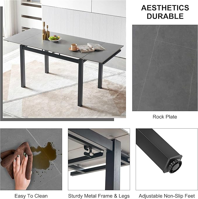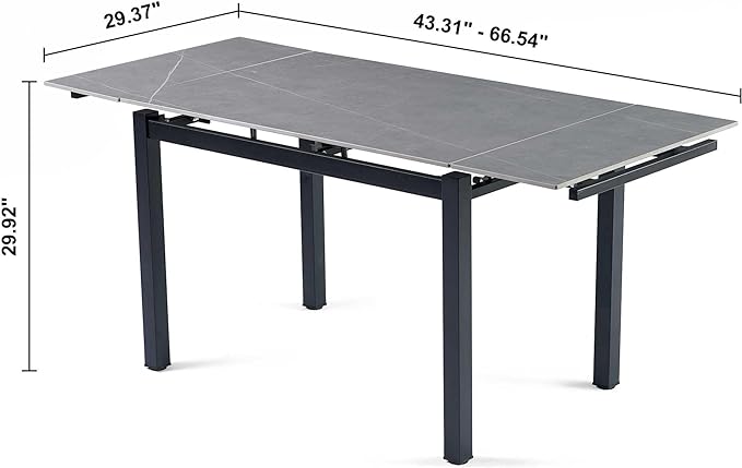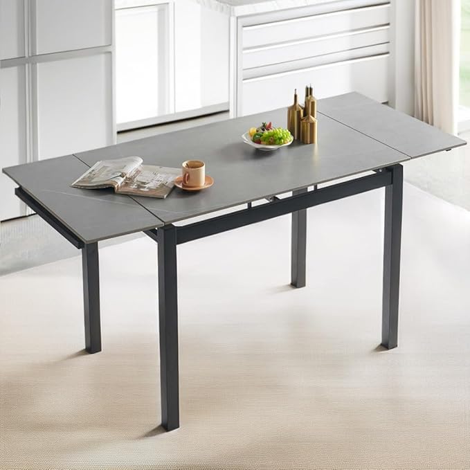 NicBex 43.31Inch Rectangular Expandable Dining Table,Minimalist Kitchen Table with Grey Ceramic Tabletop for 4 to 6,Dining Room Table for Kitchen,Small Space and Living Room,Space-Saving,Grey