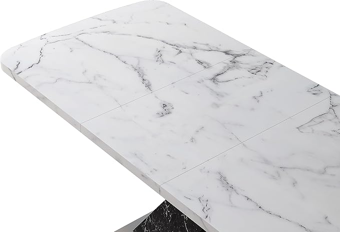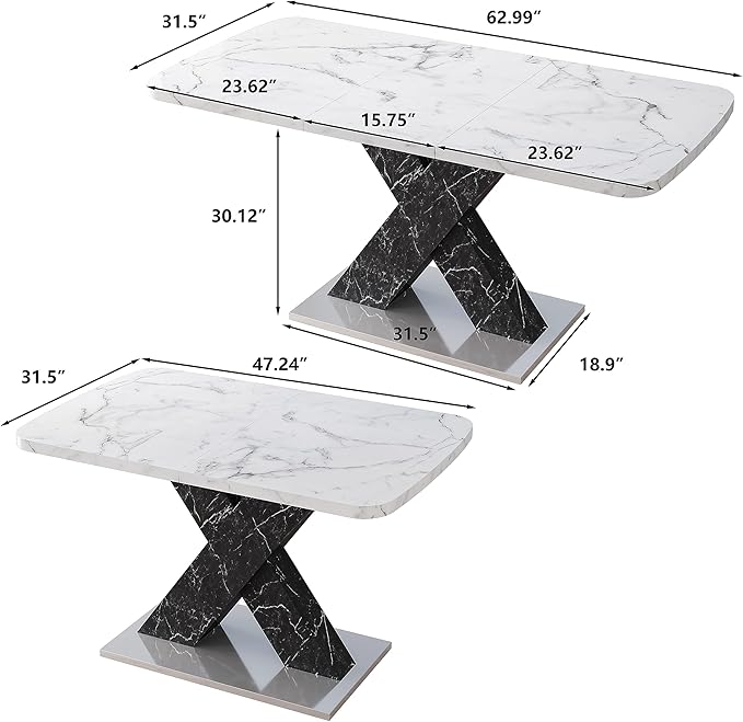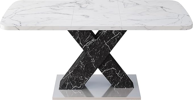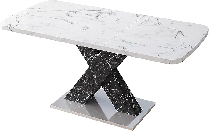 NicBex 62.99Inch Expandable Dining Table,Modern Kitchen Table with White Marble Tabletop and MDF White X-Shape Legs for 6 to 8,Large Dining Room Table for Kitchen,Meeting Living Room,Antique White