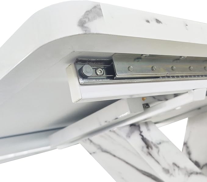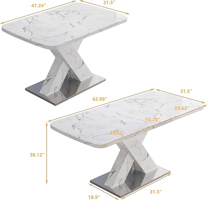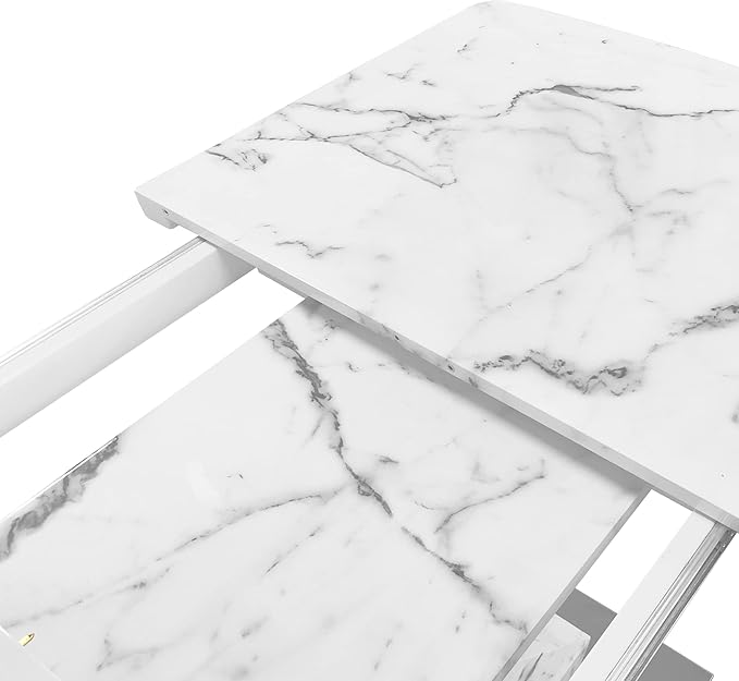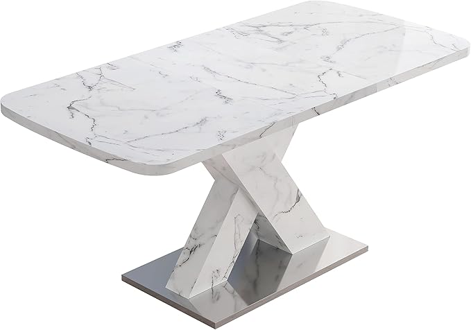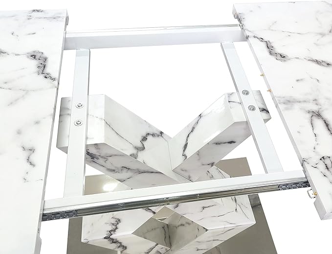 NicBex 62.99Inch Expandable Dining Table,Modern Kitchen Table with White Marble Tabletop and MDF White X-Shape Legs for 6 to 8,Large Dining Room Table for Kitchen,Meeting Room and Living Room,White