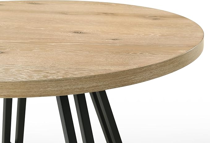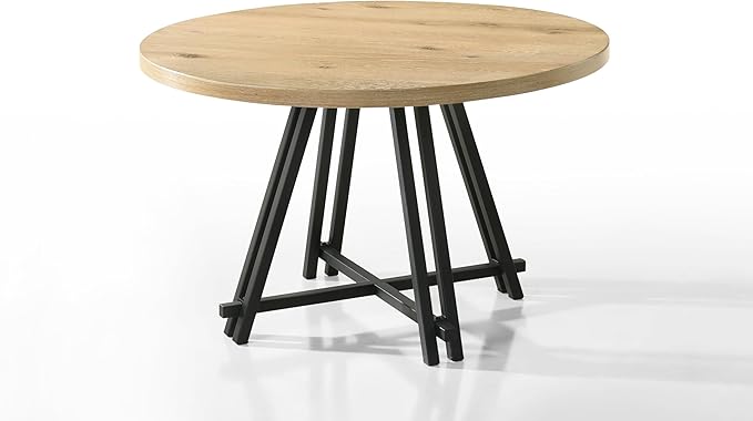 NicBex 47Inch Round Dining Table,Mid-Century Kitchen Table with Metal Leg Frame and Cross Base Leg for 2 to 4,Leisure Coffee Table for Kitchen,Small Space,Meeting Room and Living Room,Space-Saving,Oak