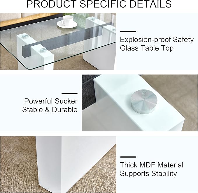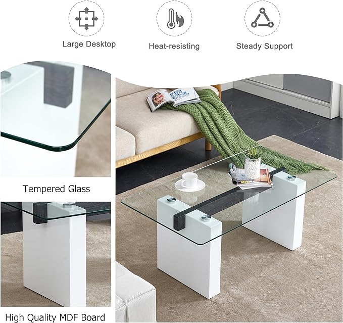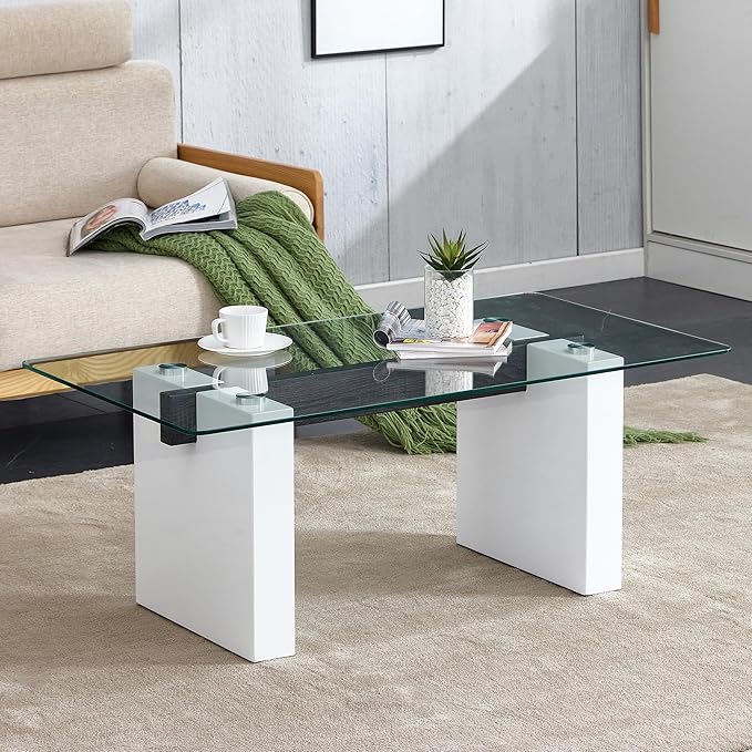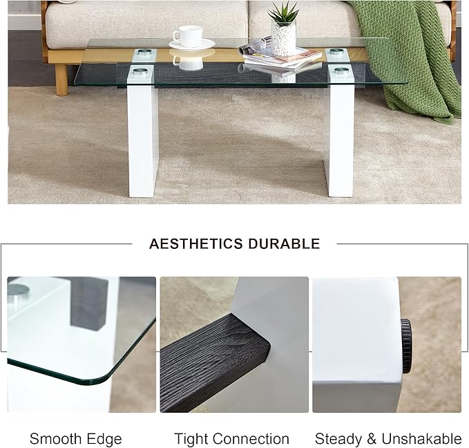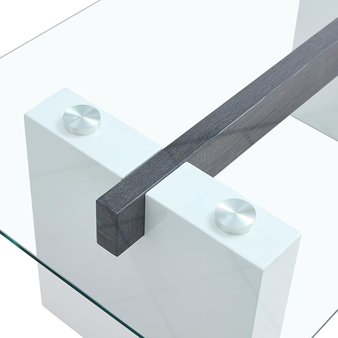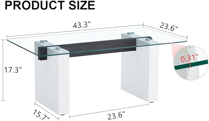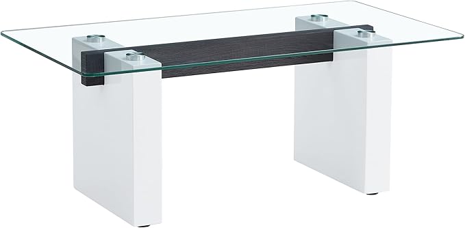 NicBex 43.3Inch Rectangular Dining Table,Minimalist Kitchen Table with Tempered Glass Tabletop and Wood MDF Legs for 4 to 6,Dining Room Table for Kitchen,Meeting Room and Living Room,Transparent