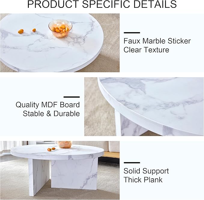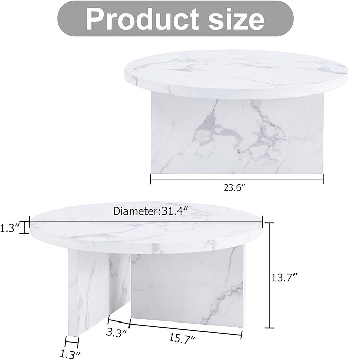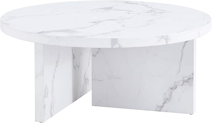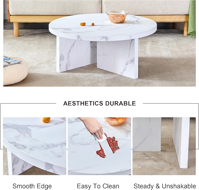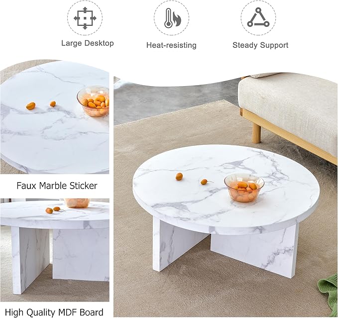 NicBex 31.4Inch Round Dining Table,Mid-Century Modern Kitchen Table with White Patterns Tabletop for 2 to 4,Leisure Coffee Table for Kitchen,Small Space and Living Room,Space-Saving,White