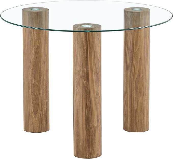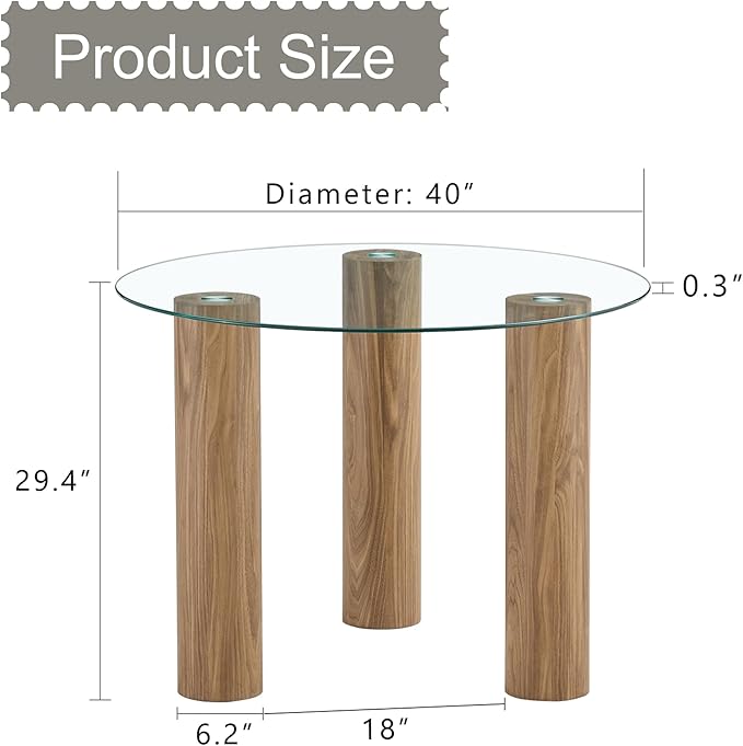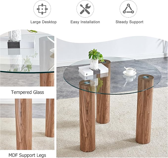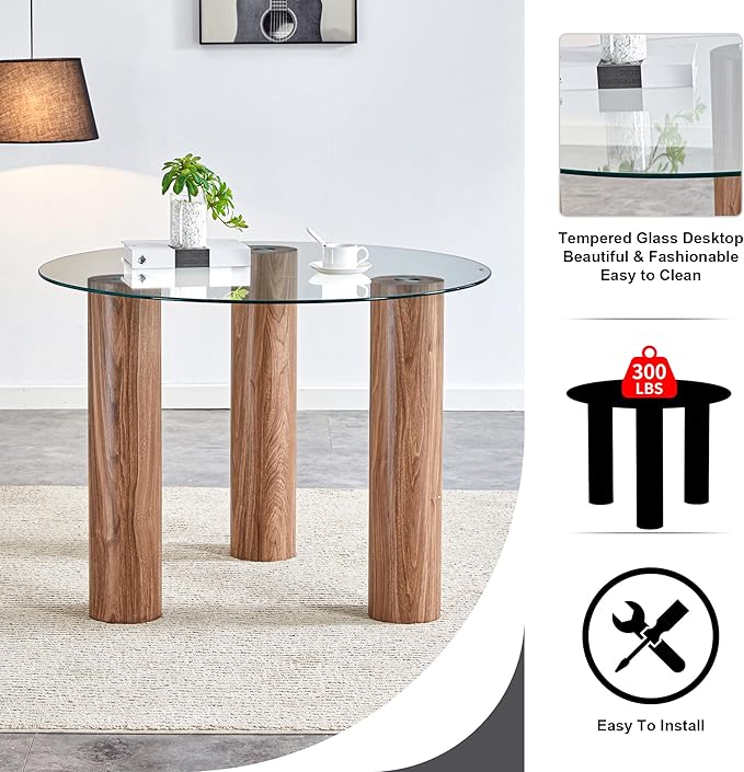 NicBex 40Inch Round Dining Table,Modern Kitchen Table with Tempered Glass Tabletop and Wooden MDF Legs for 2 to 4,Leisure Coffee Table for Kitchen,Small Space and Living Room,Easy Clean,Transparent