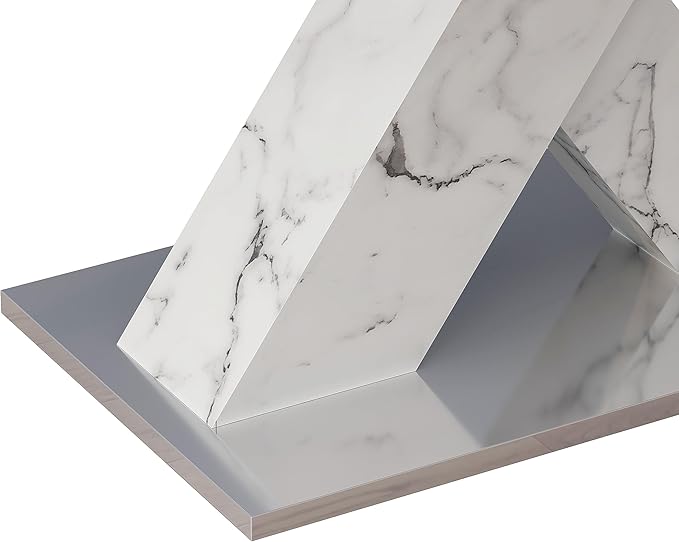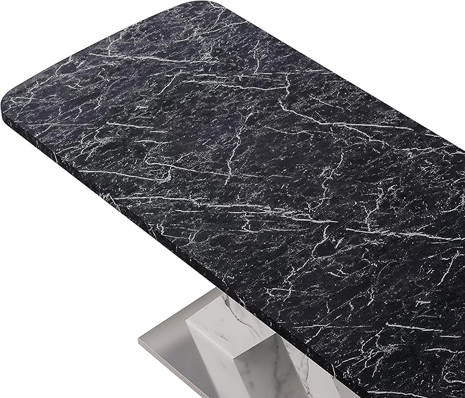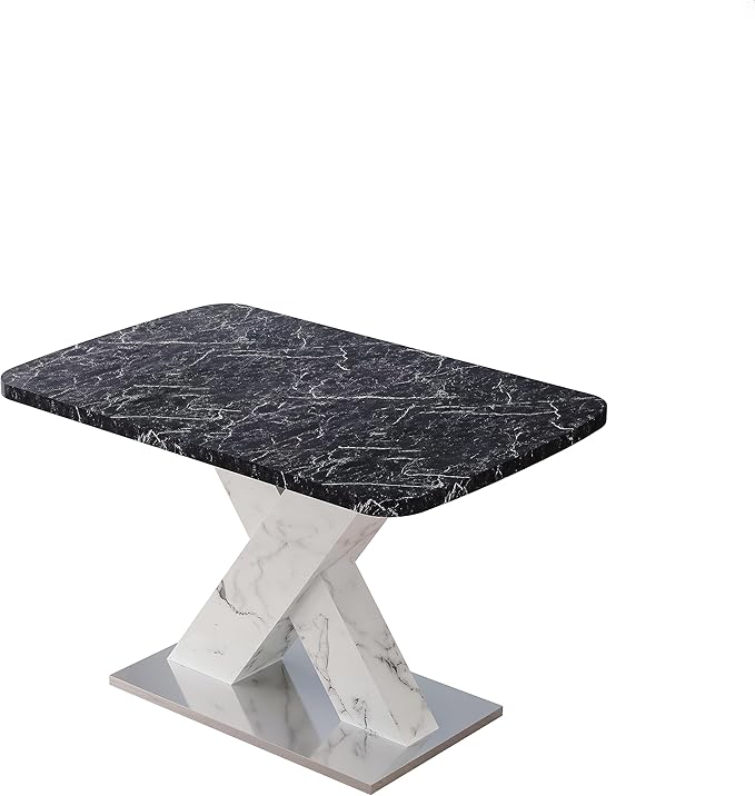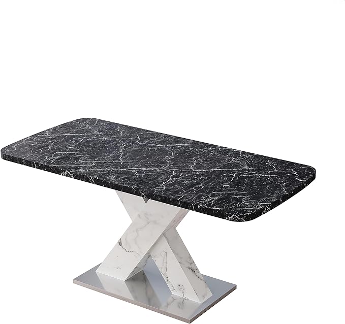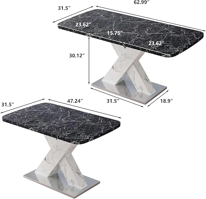 NicBex 62.99Inch Expandable Dining Table,Modern Kitchen Table with Black Marble Tabletop and MDF White X-Shape Legs for 6 to 8,Large Dining Room Table for Kitchen,Meeting Living Room,Black+White