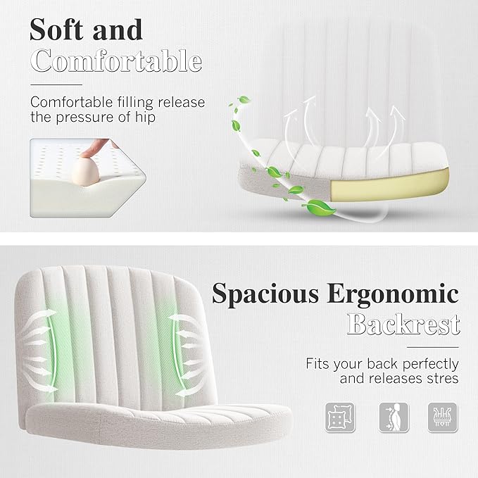 Criss Cross Legged Chair with Wheels, Armless Swivel Wide Padded Height Adjustable Fabric Home Office, Beige