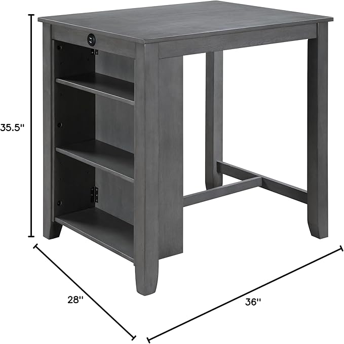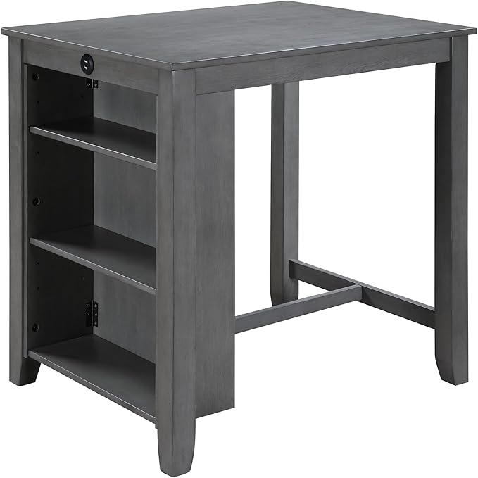 NicBex 28Inch Rectangular Dining Table,Counter Height Kitchen Table with USB Charging Ports and Shelves for 2 to 4,Small Dining Room Table for Kitchen,Meeting Room and Living Room,Space-Saving,Gray