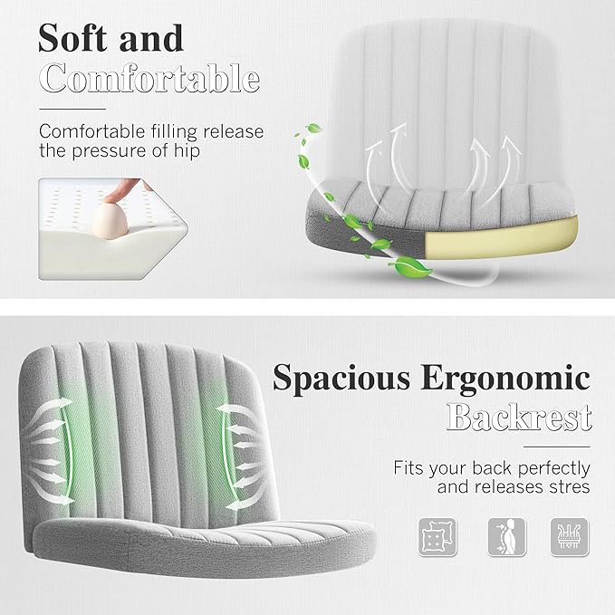 Criss Cross Legged Chair with Wheels, Armless Swivel Wide Padded Height Adjustable Fabric Home Office, Light Grey
