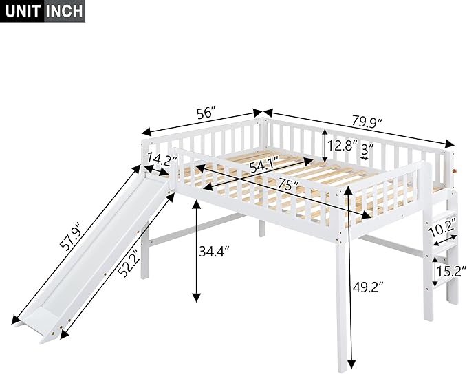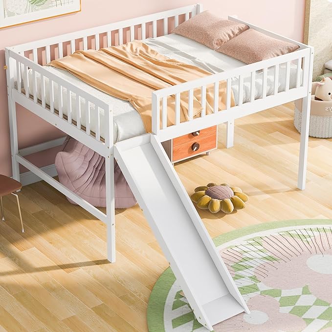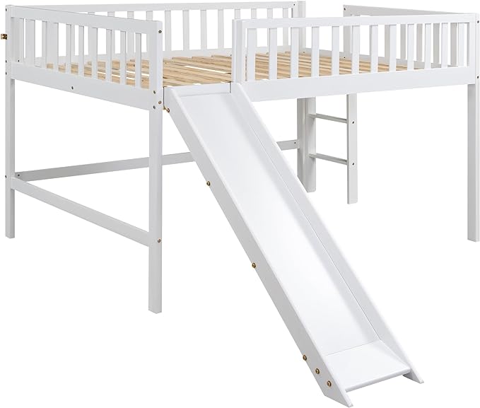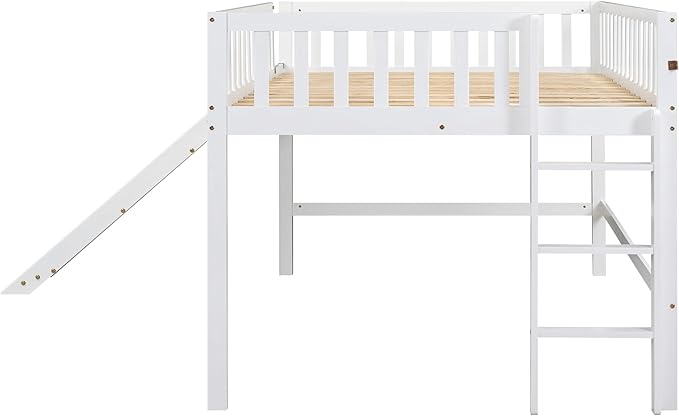 Merax Full Size Junior Wood Loft Bed with Slide Loft Bunk Bed for Girls Boys,Easy Assemble,White