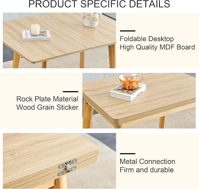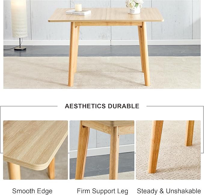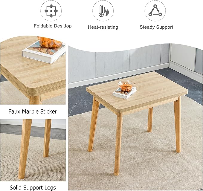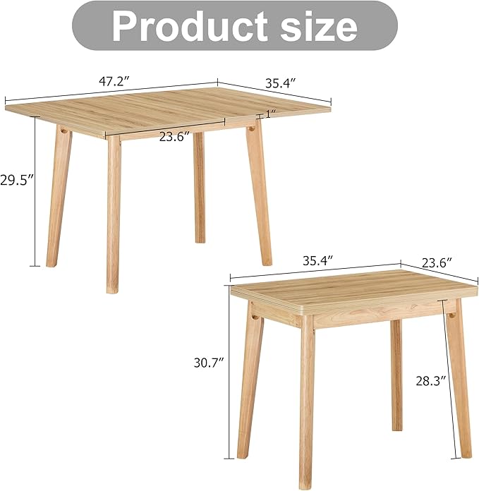 NicBex 47.2Inch Folding Rectangular Dining Table,Modern Kitchen Table with MFC Tabletop and Rubber Wooden Legs for 4 to 6,Dining Room Table for Kitchen,Meeting Room and Living Room,Space-Saving,Wood