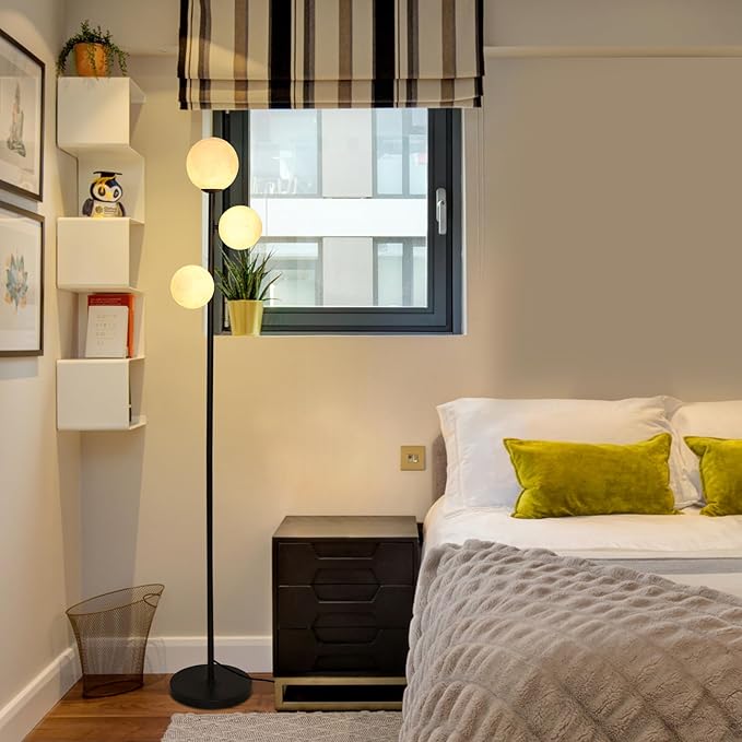 3 Globe Floor Lamps for Living Room, Black Standing Lamp with LED G9 Bulbs, Modern Floor Lamp with 3D Moon Printing Frosted Shades, 67" Corner Tall Lamp for Bedroom, Stand Up Lamp for Office Kids Room