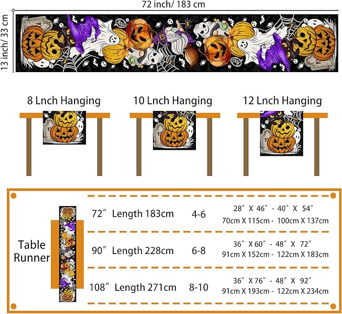 Halloween Table Runner Pumpkin Black Cat Halloween Table Runners 72 Inches Long Happy Halloween Boo Ghost Theme Decor for Kitchen Dining Table Home Party Decorations