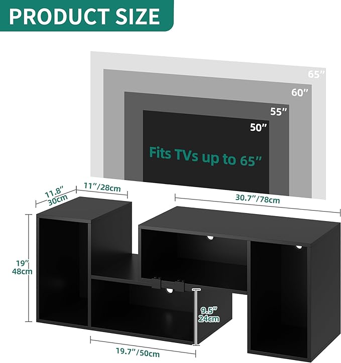 YITAHOME 42" Deformable TV Stand w/LED Strip, Modern Entertainment Center for 70/65/60/55/50/45 inch TVs, Gaming TV Consoles 2 Pieces Media Console Cabinet for Living Room, Black