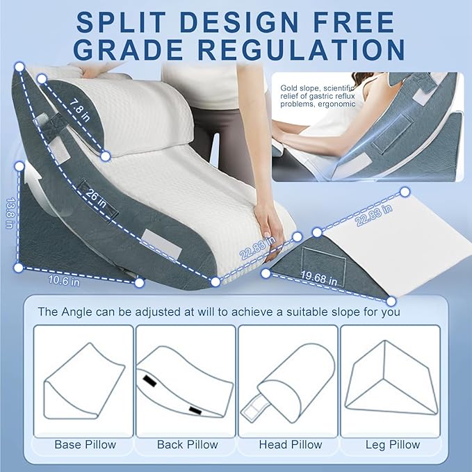 4Pcs Orthopedic Bed Wedge Pillow Set for Sleeping, Memory Foam Bed Wedge Pillow for Post Surgery, Back, Neck, Knee Pain Relief, Adjustable Sleeping Wedge Pillow with Washable Cover
