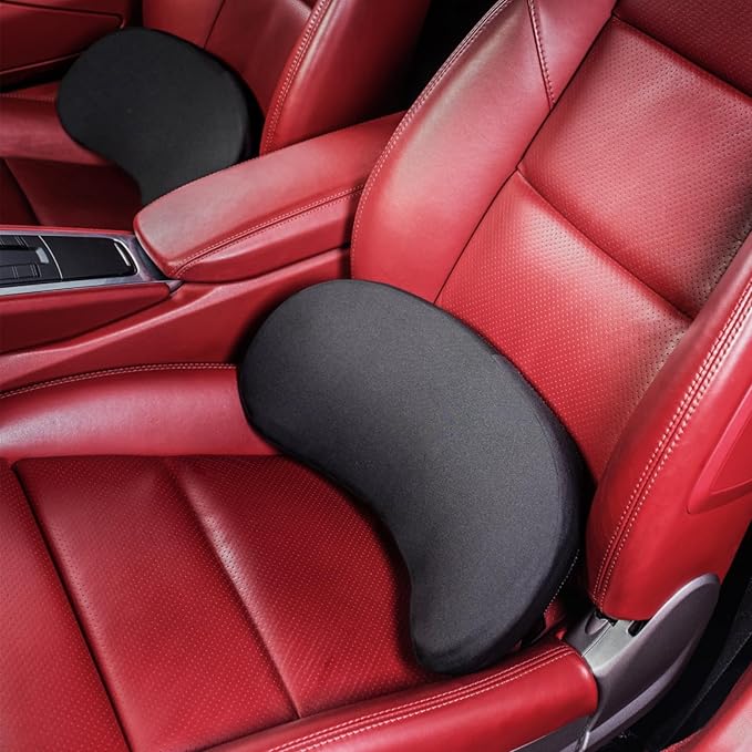 Lumbar Support Pillow for Car - Memory Foam for Lower Back Pain Relief by Reducing Pressure - Ergonomic Design for Office Chair, Car Driver, Recliner - Black