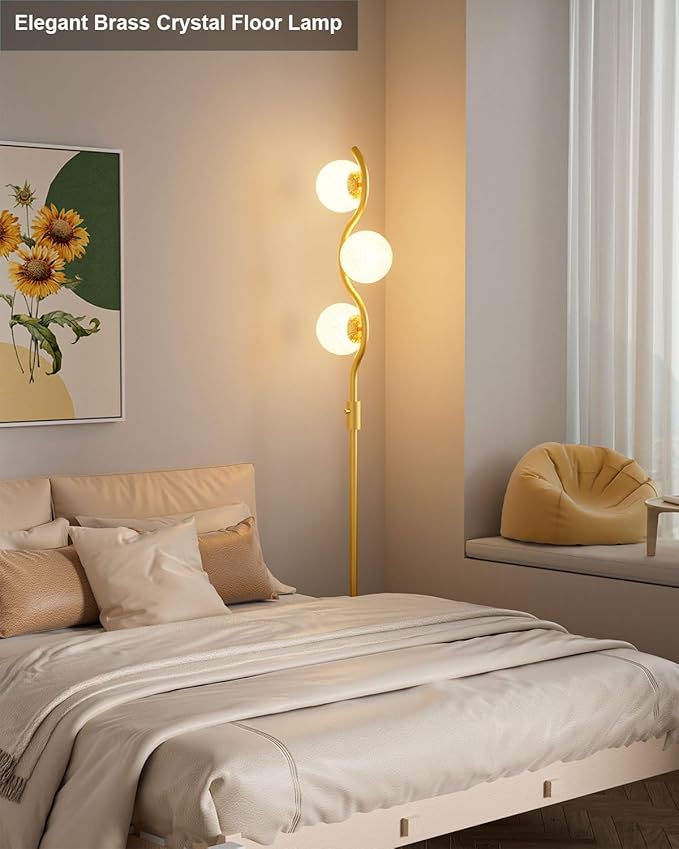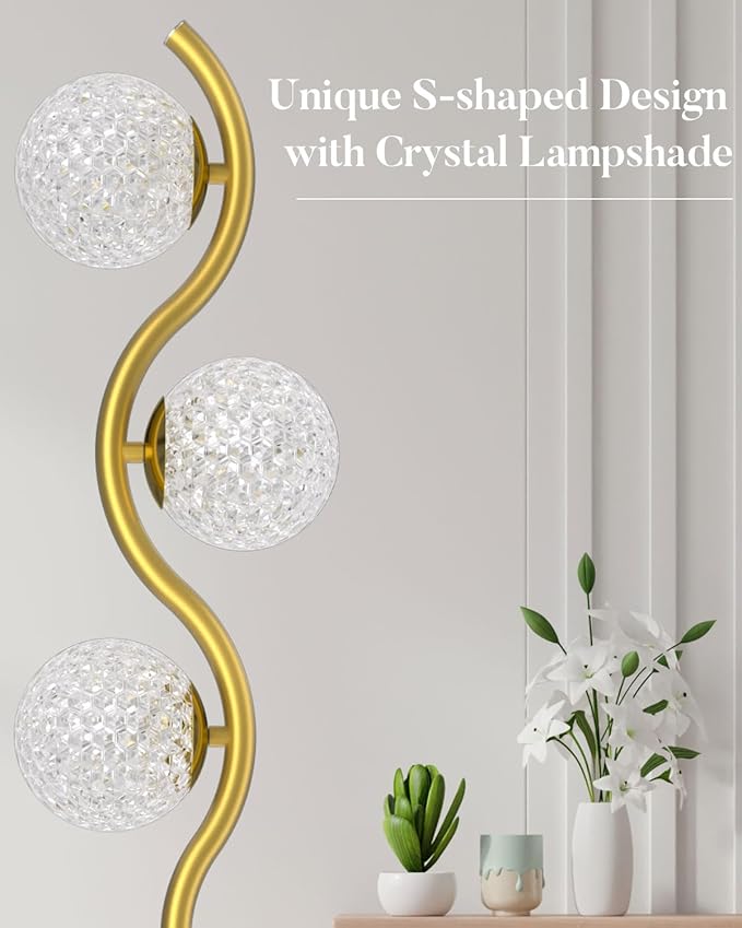 60IN Dimmable Gold Standing Lamps, Ice Crystal Modern Floor Lamp with 3000K G9 Bulbs Included, Mid Century Vintage Globe Floor Lamp