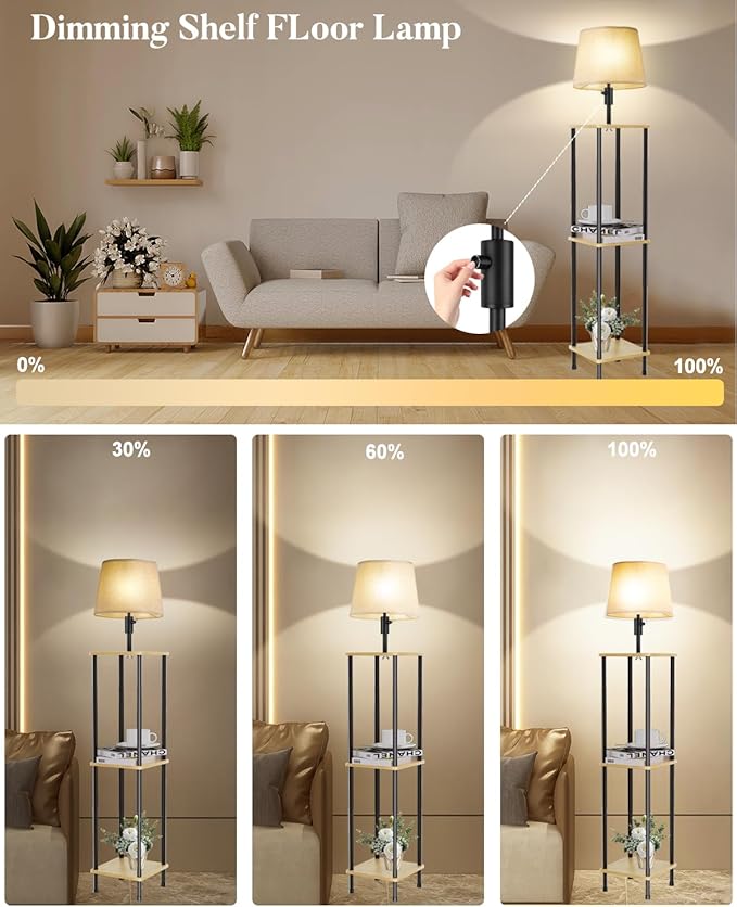 About This Upgraded Stepless Dimming: Equipped with a dimmable E26 LED bulb, our shelf floor lamp can be adjusted to...