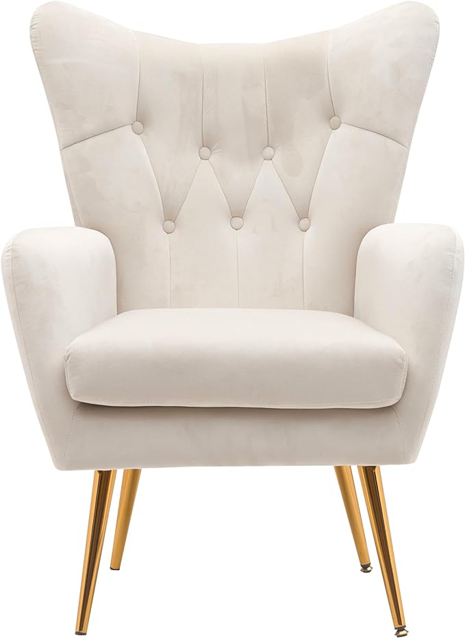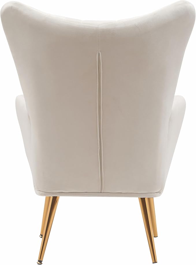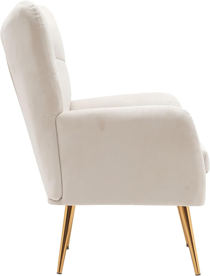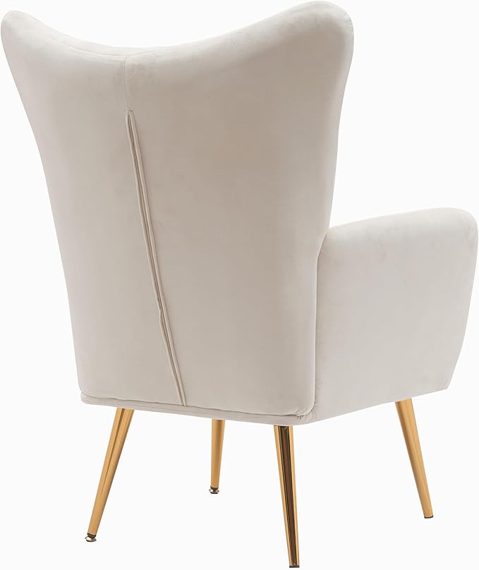 US Pride Furniture Modern Accent Chair with Ergonomic High Wingback, Microfiber Upholstered Armchair with Metal Legs for Living Room, Bedroom, Office or Vanity, Ivory