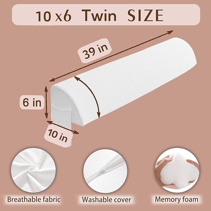 Bed Wedge Pillow for Headboard Gap Bed Mattress Gap Filler (0-8'') Memory Foam Bed Crack Headboard Pillow Stopper to Close The Gap Between Headboard Wall and Mattress Space Filler Twin