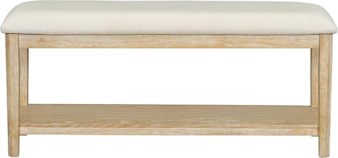 6-Piece Retro Dining Set, Minimalist Rectangular Table and 4 Upholstered Chairs & 1 Bench with a Shelf for Kitchen Living Room, Natural Wood Wash, 60" L x 43" W x 30" H