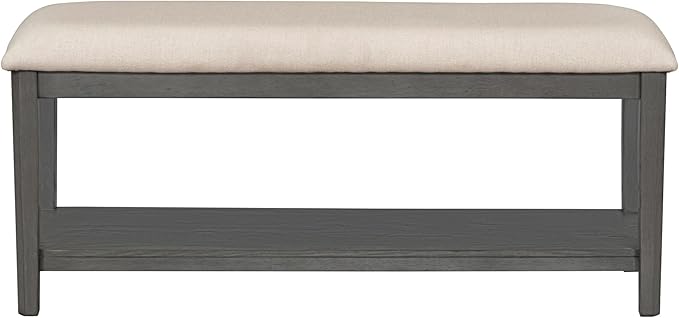 6-Piece Retro Dining Set, Minimalist Rectangular Table and 4 Upholstered Chairs & 1 Bench with a Shelf for Kitchen Living Room, Dark Gray, 60" L x 43" W x 30" H