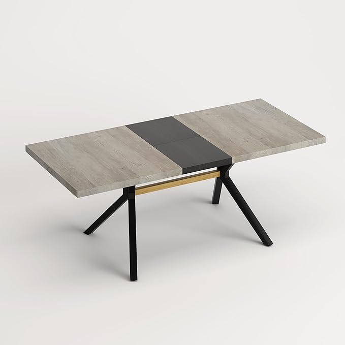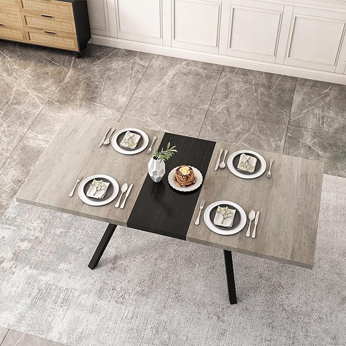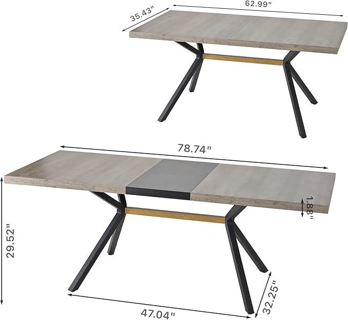 NicBex 78.74Inch Rectangular Stretch Dining Table,Modern Kitchen Table with Grey Carole Top and Black Fine Sanded Iron Leg for 6 to 8,Large Dining Room Table for Kitchen,Dining Living Room,Grey