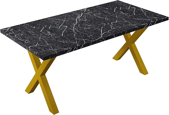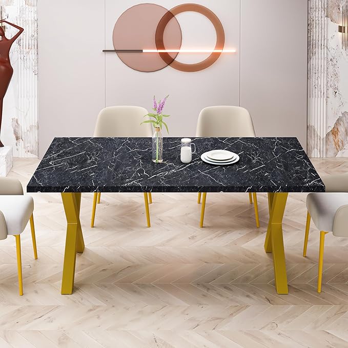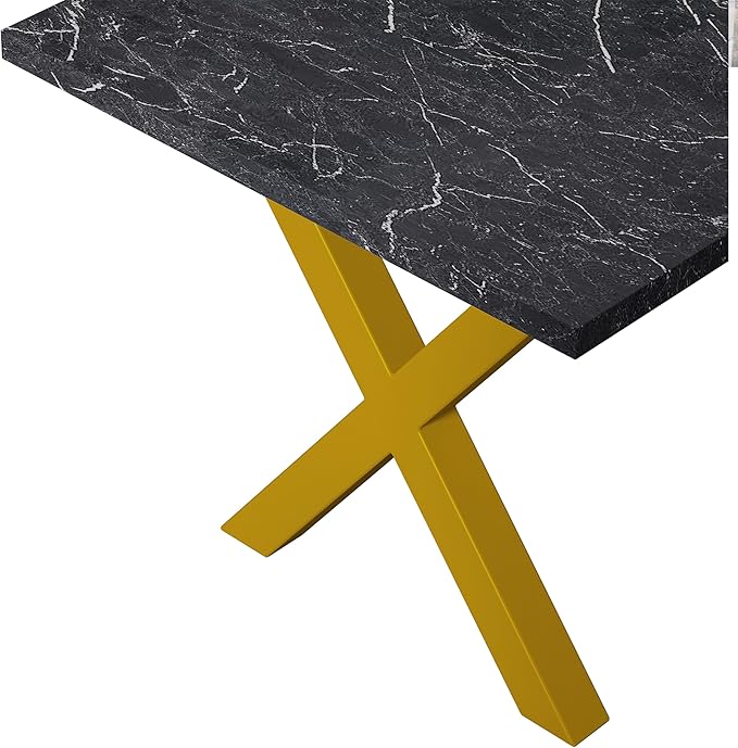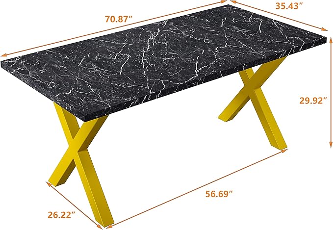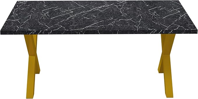 NicBex 70.87Inch Rectangular Dining Table,Modern Kitchen Table with Printed Black Marble Tabletop and Gold X-Shape Leg for 6 to 8,Large Dining Room Table for Kitchen,Meeting Living Room,Black