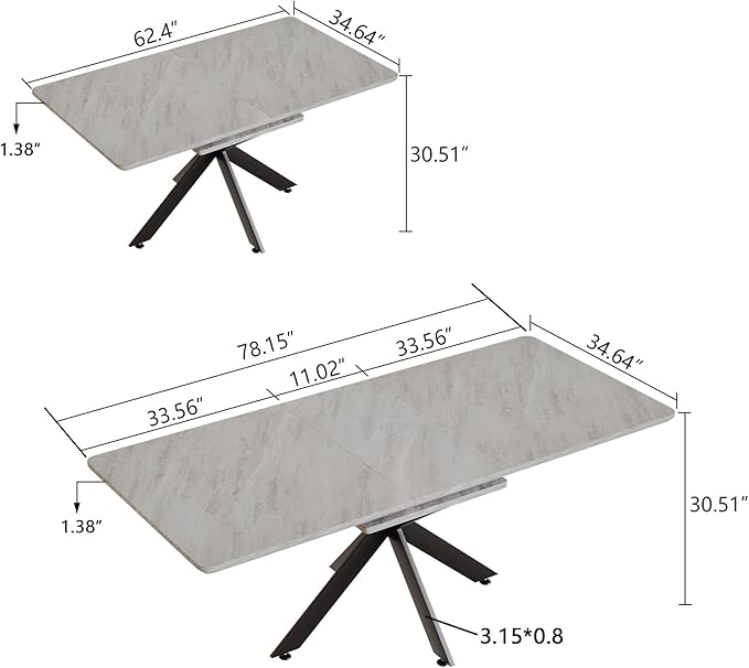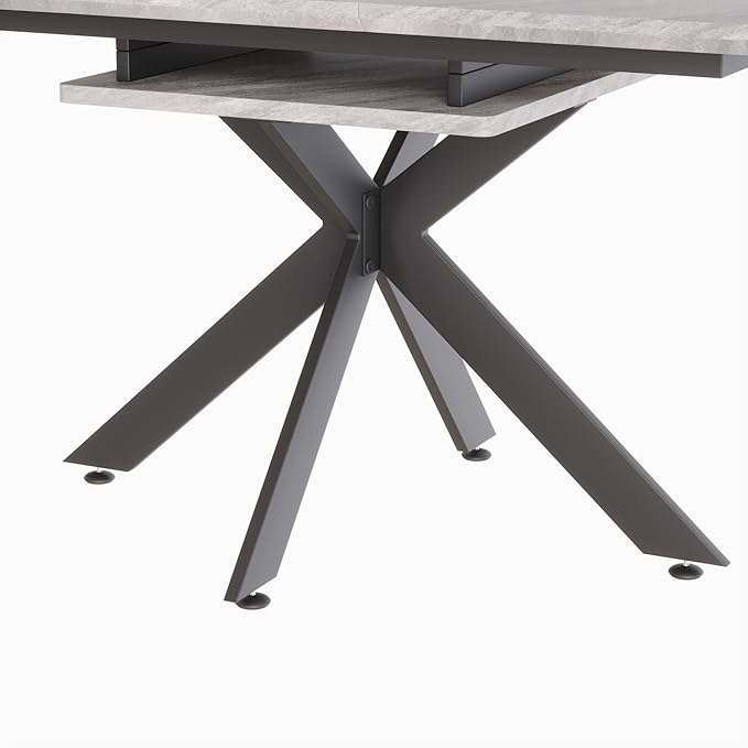 NicBex 62.4Inch Rectangular Extendable Dining Table,Mid-Century Modern Kitchen Table with Black Metal X-Shape Legs for 6 to 8,Large Dining Room Table for Kitchen,Meeting Room and Living Room,Grey