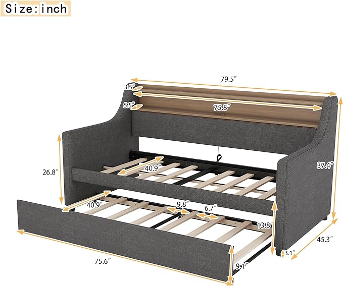 About This Linen 🏆🏆【Stylish and Modern Upholstered Daybed】This twin size daybed with trundle bed twin is upholstered in high-quality linen,...