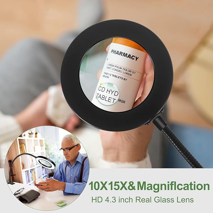 About This ✅CRYSTAL CLEAR MAGNIFICATION: Equipped with a premium 10X&15X HD real glass magnifier, the magnifying lamp provides exceptional clarity...