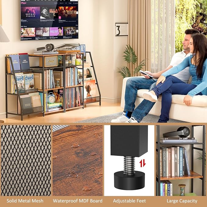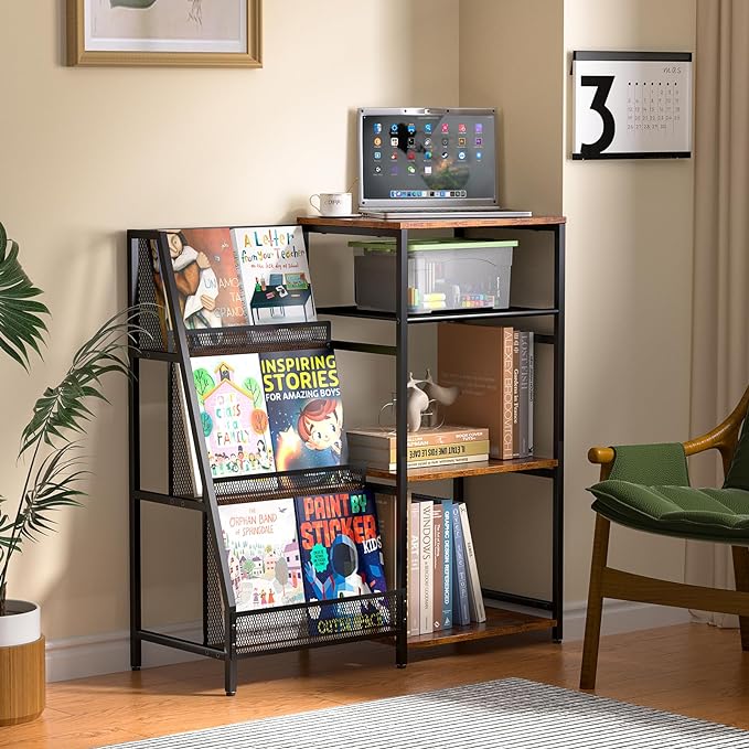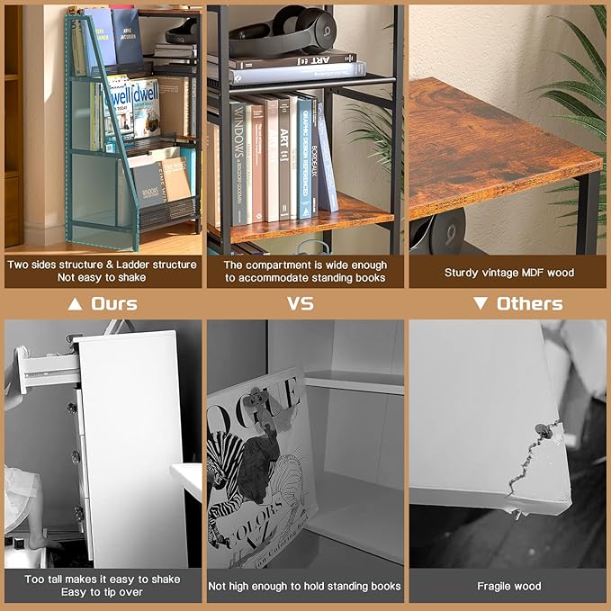 About This Large Capacity: Our short bookshelf features 3 levels of storage compartments and 3 tier book display racks with...