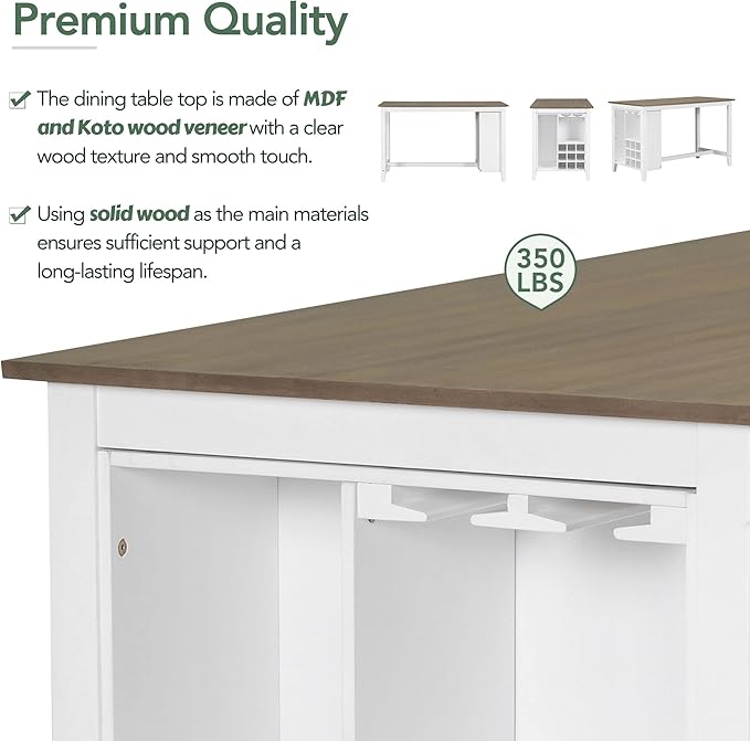 5-Piece Counter Height Dining Rubber Wood, Padded, Wine Storage and Glass Holders, Perfect Table and Chairs Set for Stylish Kitchen or Living Room, Brown, Onesize