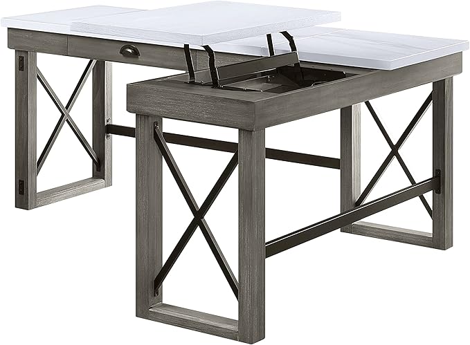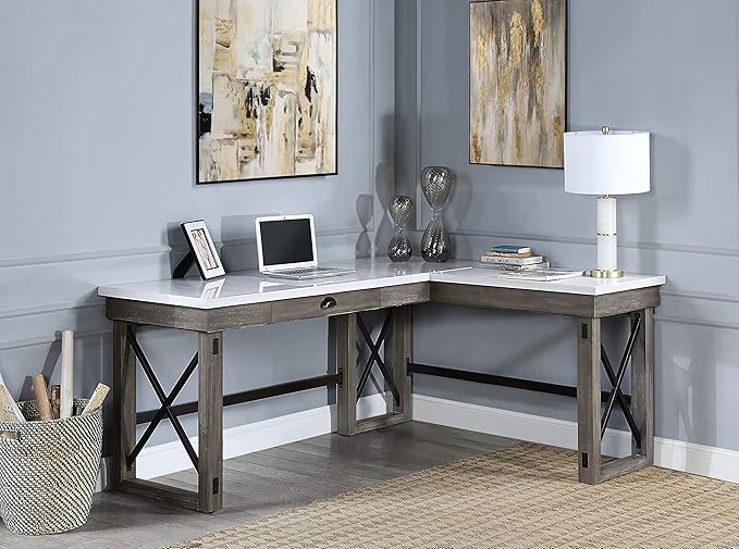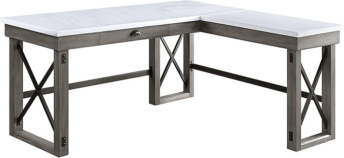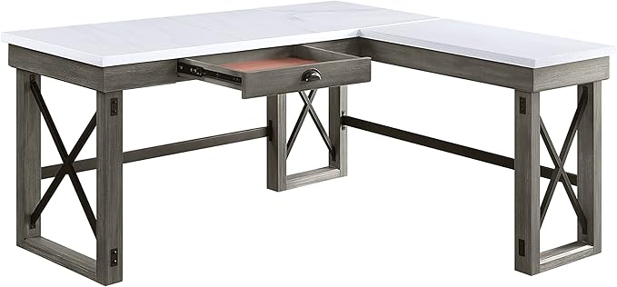 NicBex Laik-DW-00059-DX Desks, 67" W x 55" D x 30" H, White+Gray