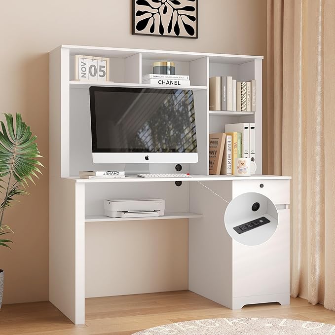 NicBex Laik-DW-00025-DX Desks, 51.18" W x 24.8" D x 59.44" H, White