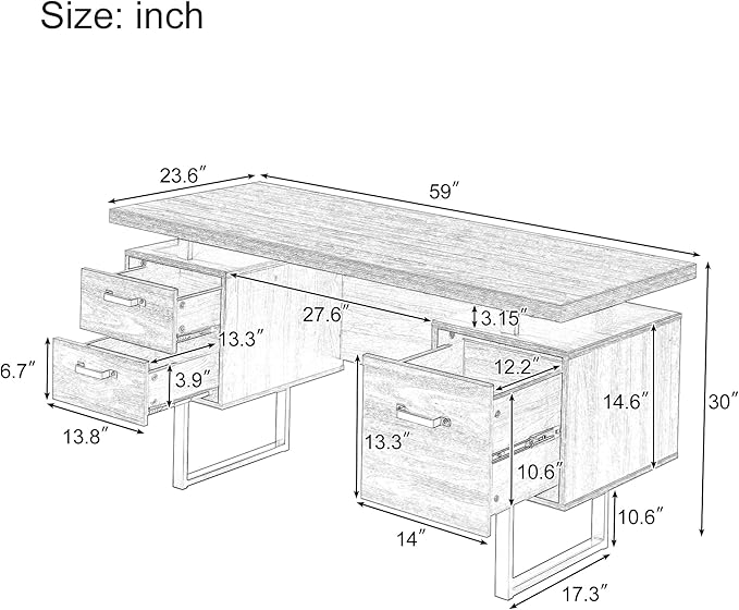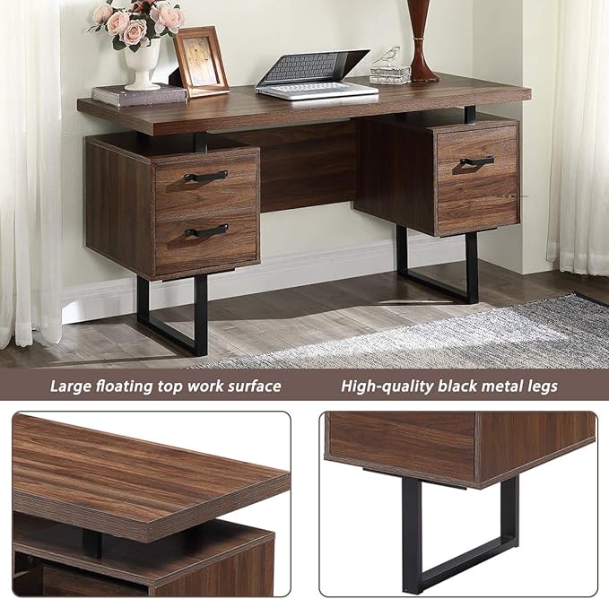 NicBex Laik-DW-00005-DX Desks, 59" W x 23.6" D x 30" H, Brown